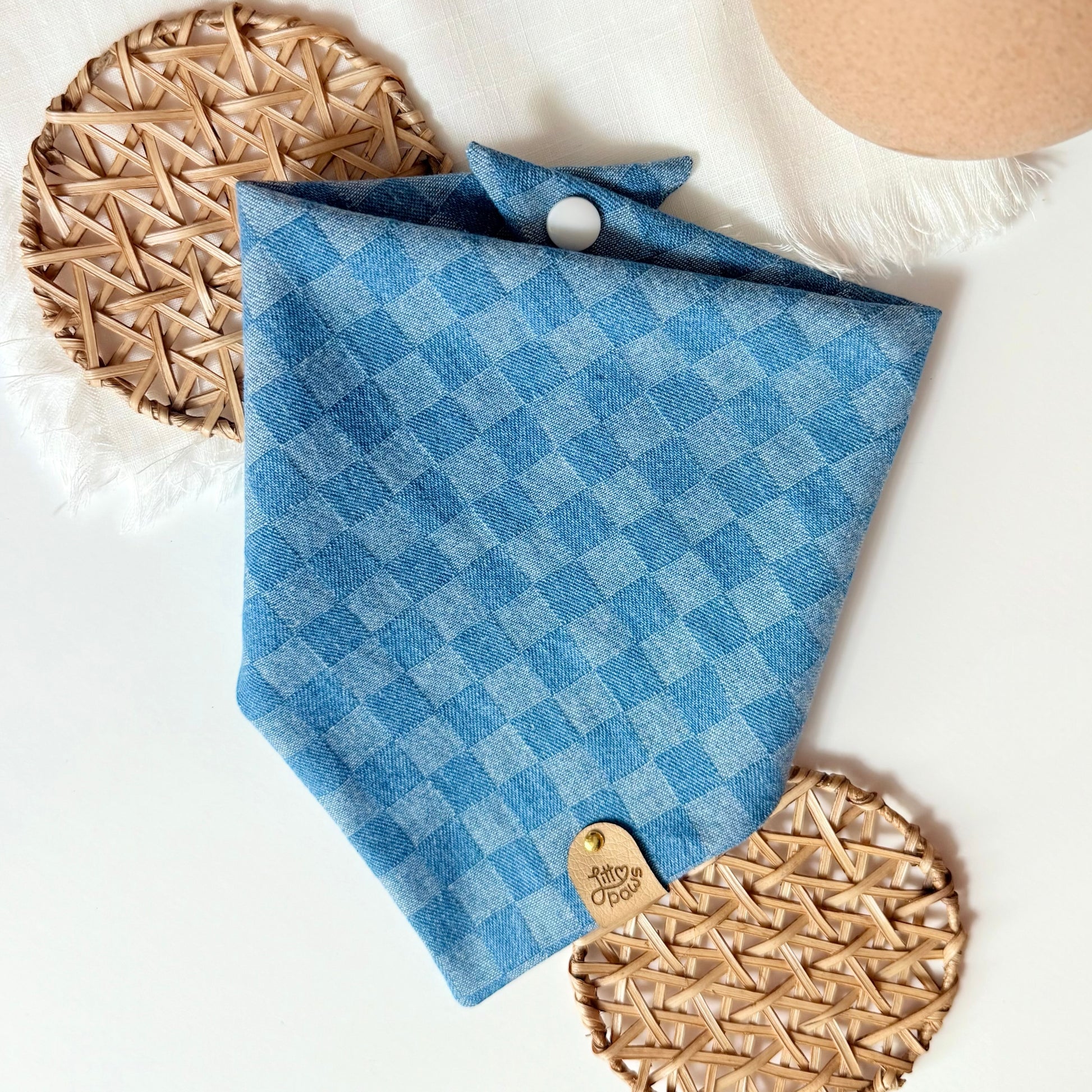 Our Denim Gingham bandana combines timeless style with durable jean fabric — perfect for pups who love to look sharp while still being ready for everyday adventures. The classic blue gingham pattern gives it that all-American charm, while the sturdy material makes it both stylish and long-lasting.