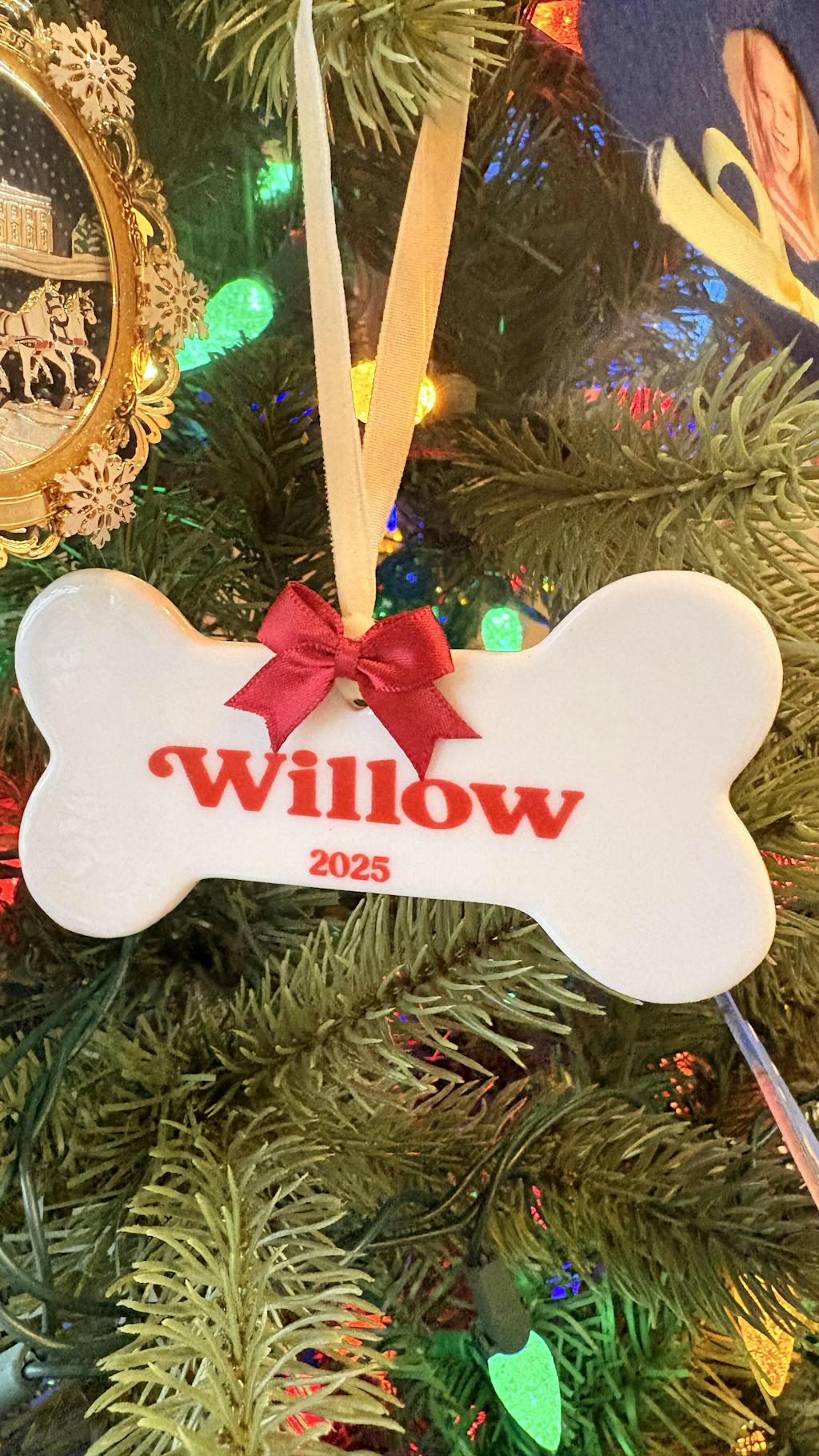 Our custom bone ornament is the perfect way to add a personal touch to your holiday décor. Each piece is carefully sublimated with your pet’s name and finished with a dainty bow and ribbon, ready to hang on your tree or gift to a fellow pet lover.