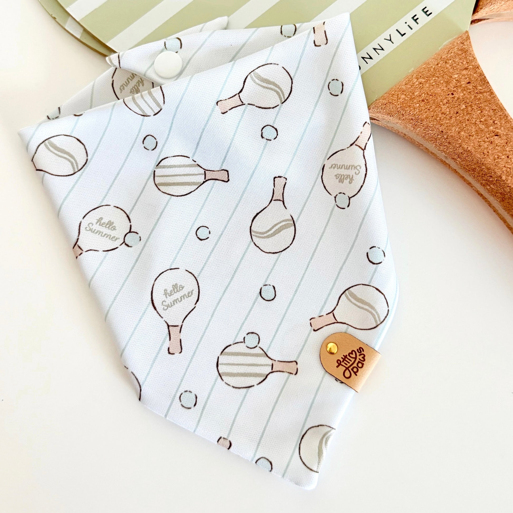 This sporty bandana features playful paddle illustrations, perfect for court-side pups and beach day vibes. Lightweight and breathable — made for summer fun in the sun.